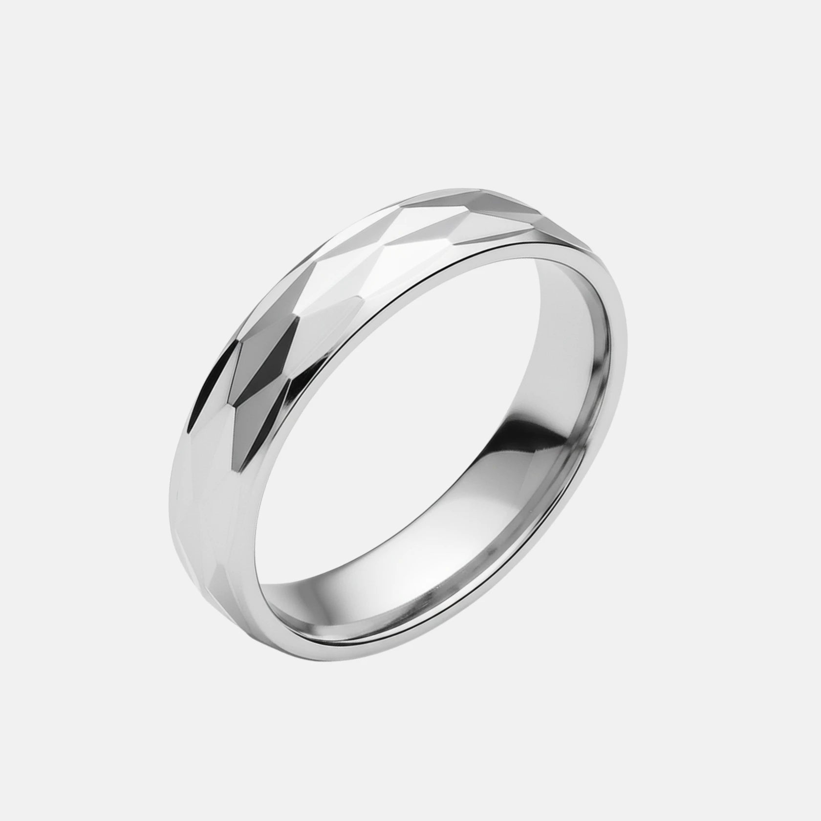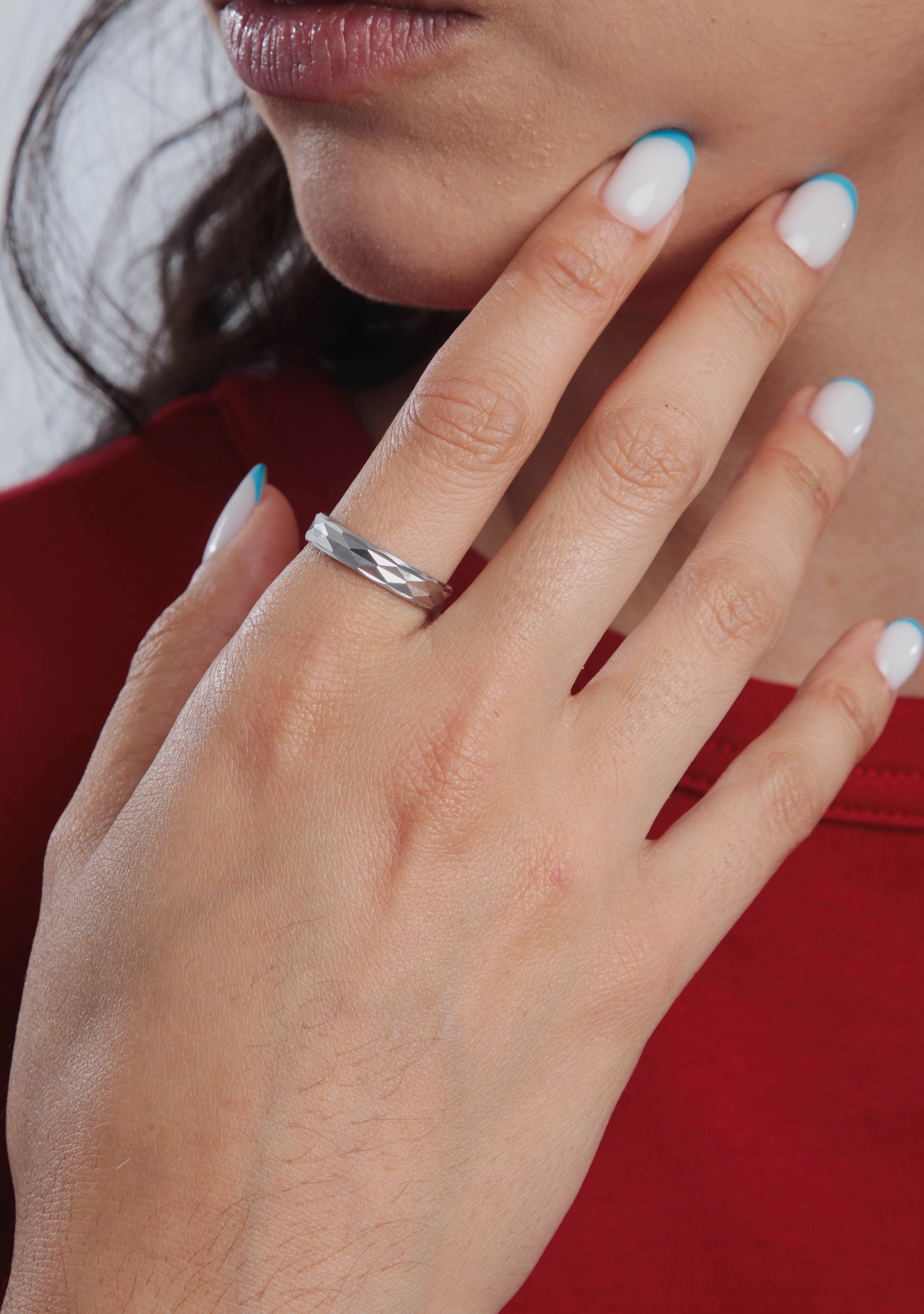La Alianza Facetada reinventa la clásica alianza con un diseño geométrico facetado que refleja la luz de manera única. Su estructura en Plata 925 le otorga un brillo sofisticado y moderno, ideal para quienes buscan una pieza versátil con un toque distintivo.