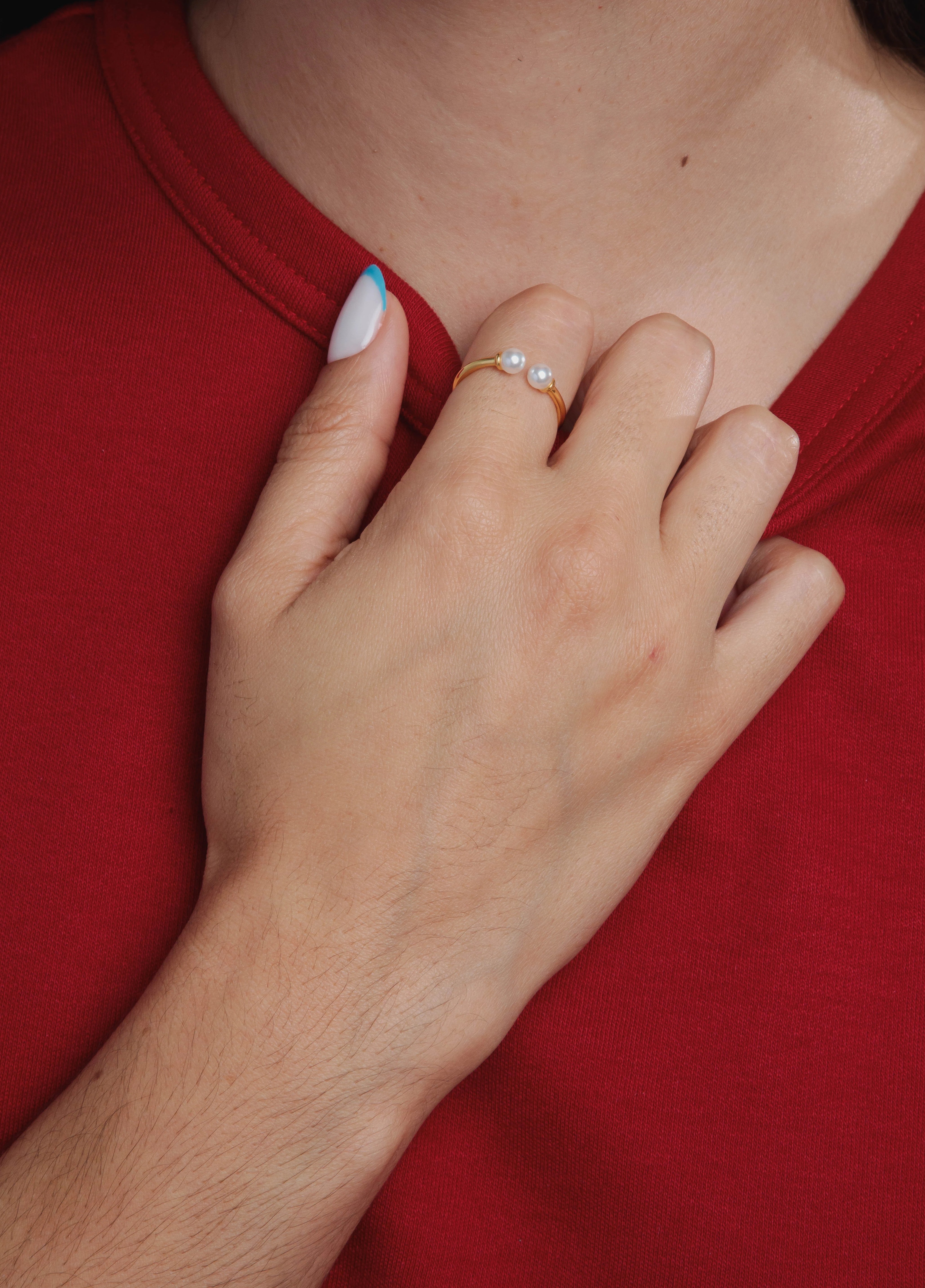 El Anillo Dúa representa el equilibrio perfecto entre simplicidad y modernidad. Su diseño en Plata 925 con baño de oro, de líneas limpias y dos perlas en extremos opuestos, simboliza dualidad y armonía. Una pieza sofisticada y versátil que se adapta a cualquier estilo