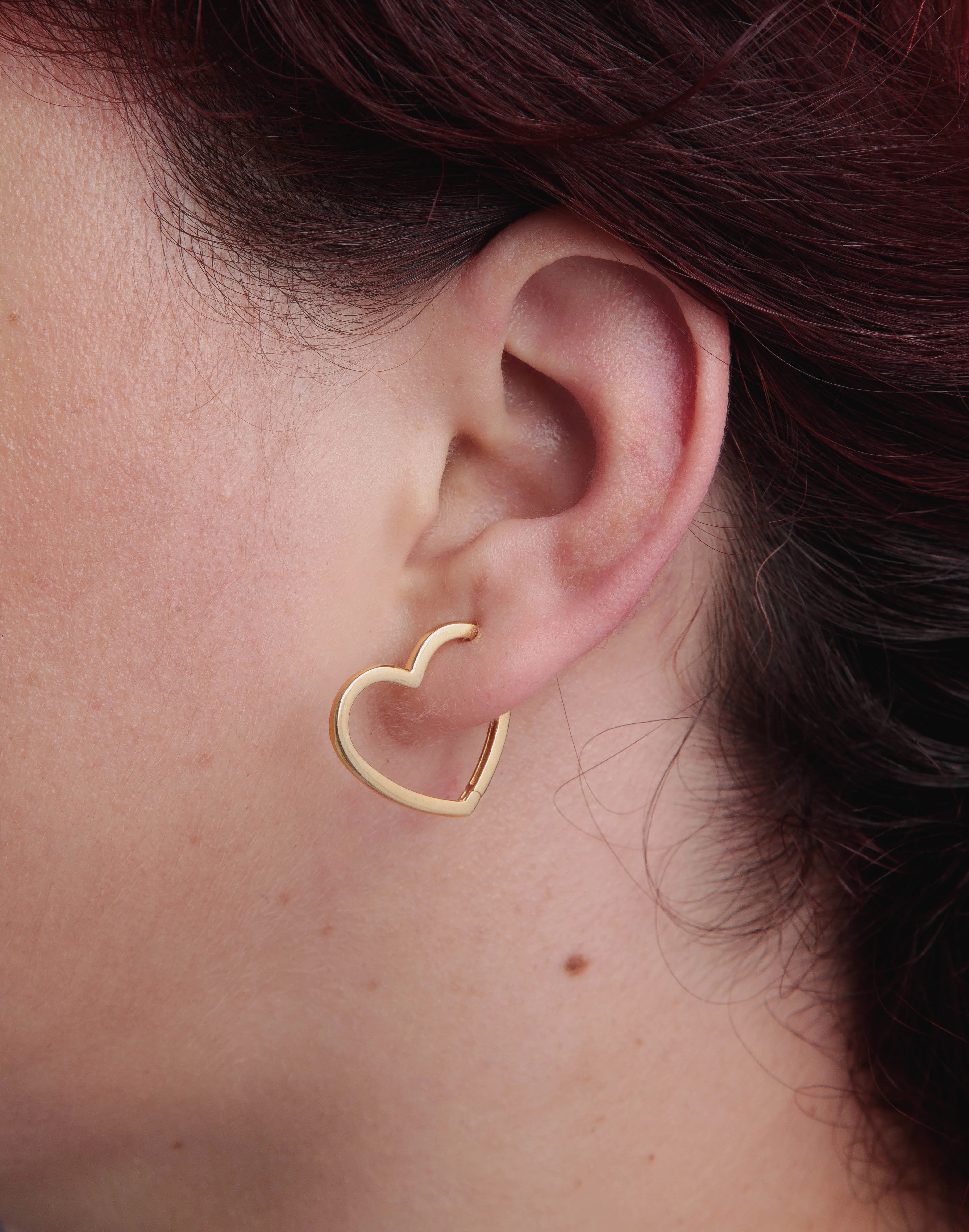Elegancia en su forma más pura. Estos aros en plata 925 con chapado de oro 18K presentan un diseño de corazón liso y minimalista, ideal para quienes buscan un toque romántico y sofisticado sin perder la sencillez. Su cierre de aro los hace cómodos y fáciles de llevar.
