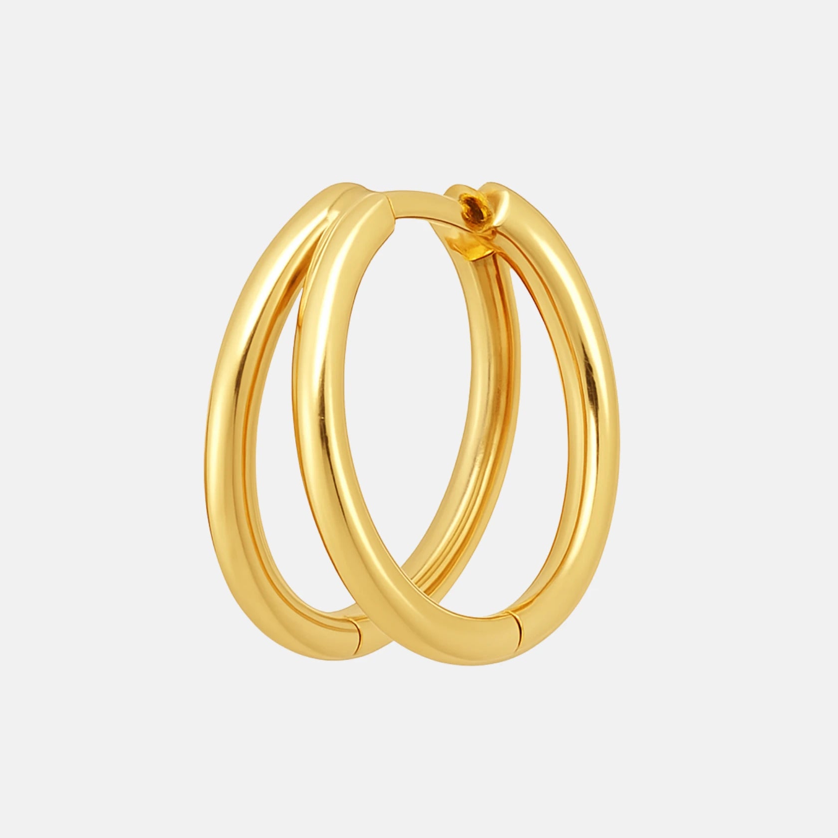Los Aros Doble Esencia están fabricados en plata 925 bañada en oro de 18K, ofreciendo un brillo cálido y duradero. Su diseño de doble aro crea un efecto sofisticado y llamativo, ideal para elevar cualquier look con un toque de distinción. Un básico reinventado.