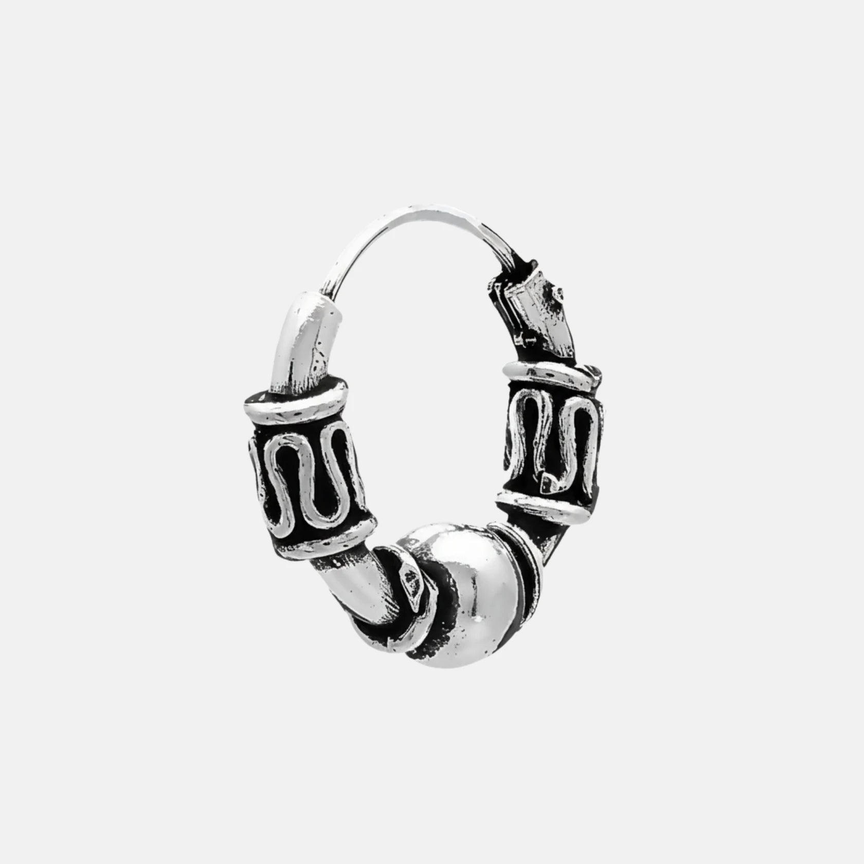 Inspirados en la joyería ancestral, estos aros de plata 925 combinan detalles tribales con un diseño rústico y artesanal. La esfera central simboliza la armonía, mientras que los patrones grabados evocan la fuerza y el equilibrio. Un accesorio perfecto para quienes buscan un estilo auténtico y con historia.