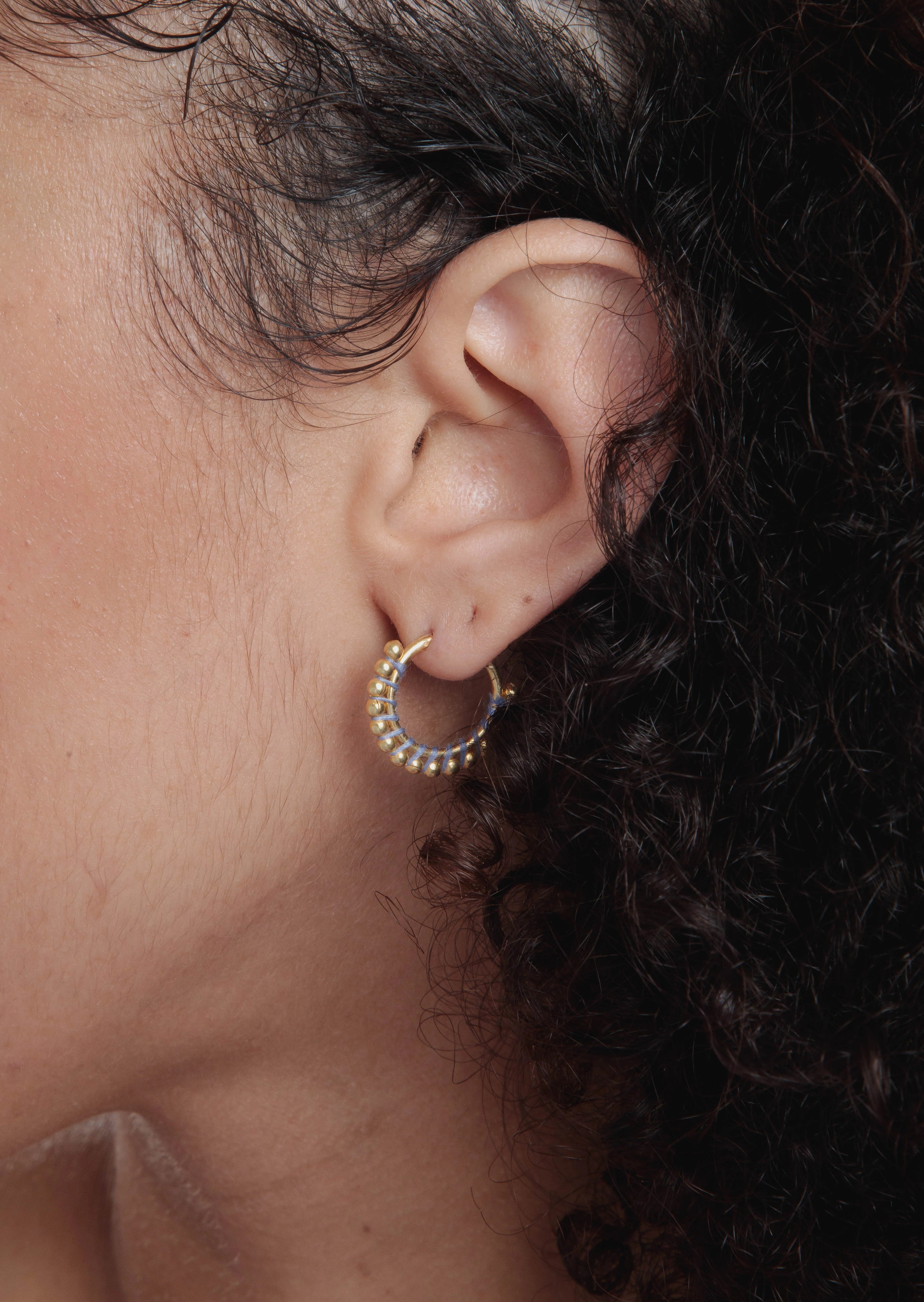 Una joya con alma artesanal. Estos aros en plata 925 con baño de oro 18K combinan la elegancia del dorado con un toque distintivo gracias al delicado hilo malva entrelazado. Un diseño que fusiona tradición y modernidad, ideal para quienes buscan accesorios únicos con un aire bohemio y sofisticado.