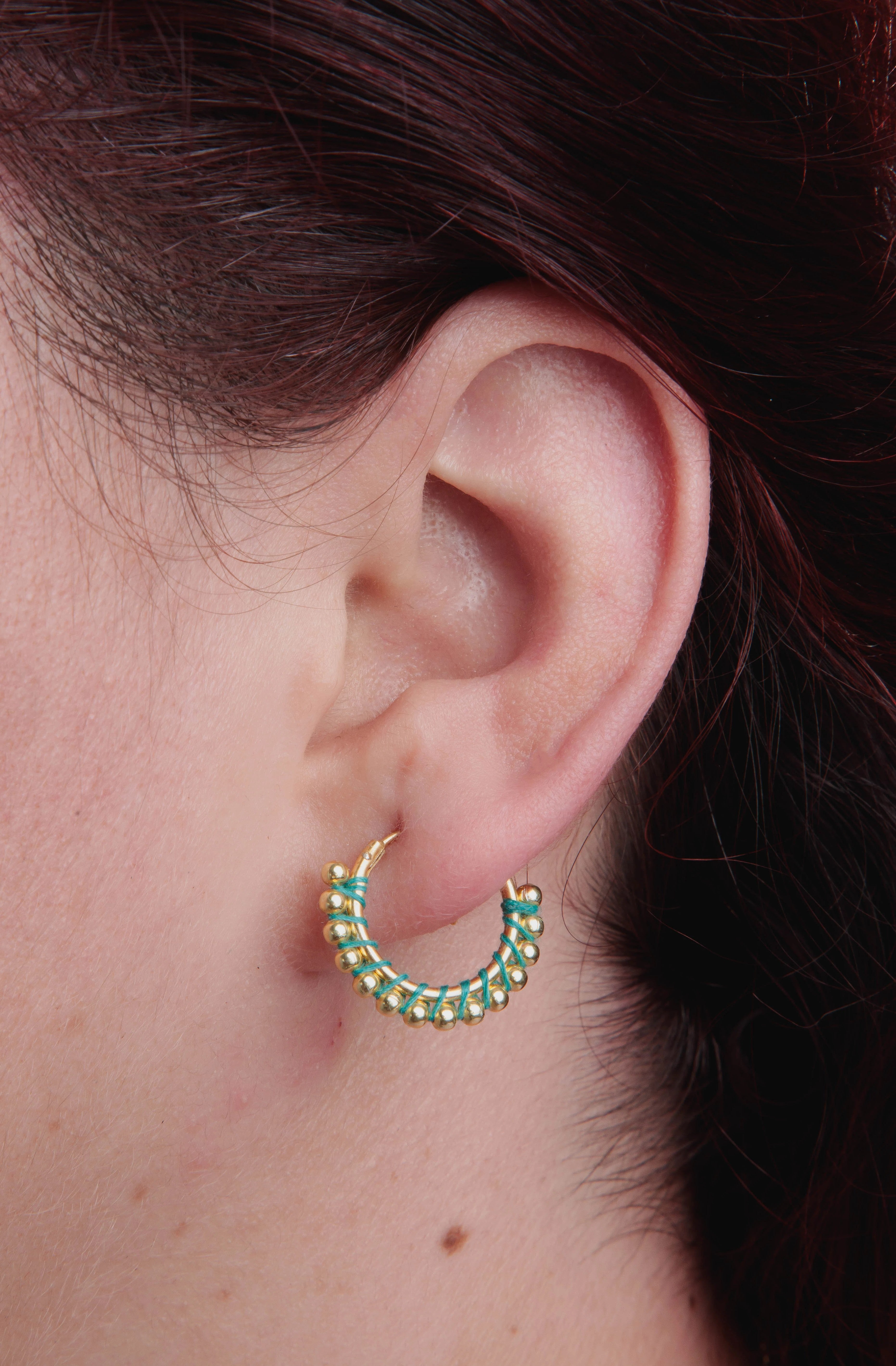 Una fusión de tradición y modernidad. Estos aros en plata 925 con baño de oro 18K destacan por su diseño artesanal, adornados con delicadas esferas doradas y un vibrante hilo verde que aporta un toque bohemio y distintivo. Perfectos para quienes buscan un accesorio con personalidad, frescura y un estilo auténtico.