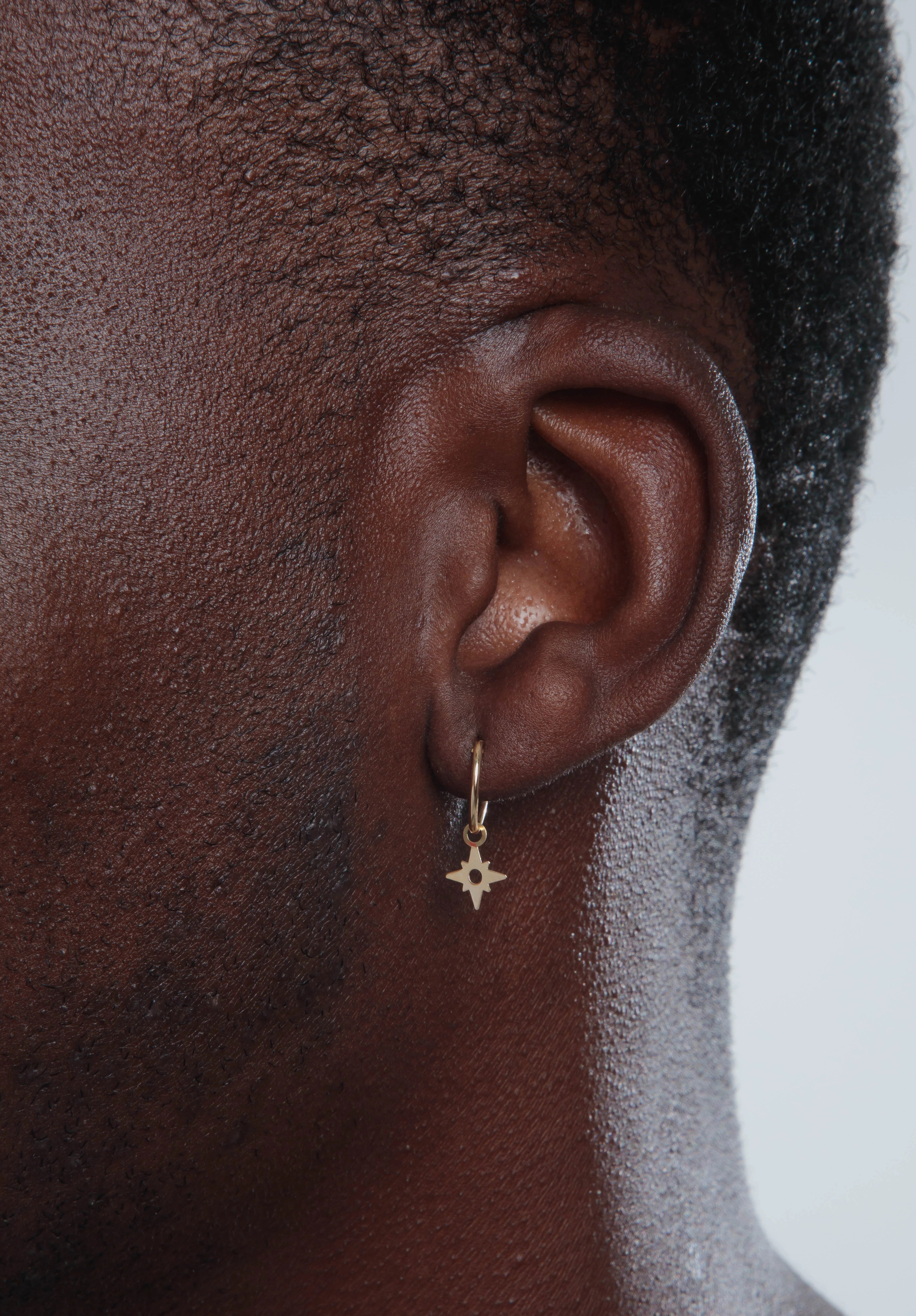 Encuentra tu camino con estos elegantes aros inspirados en la rosa de los vientos. Su diseño ligero y sofisticado combina argollas clásicas con un colgante recortado en forma de estrella náutica, evocando aventura y libertad.