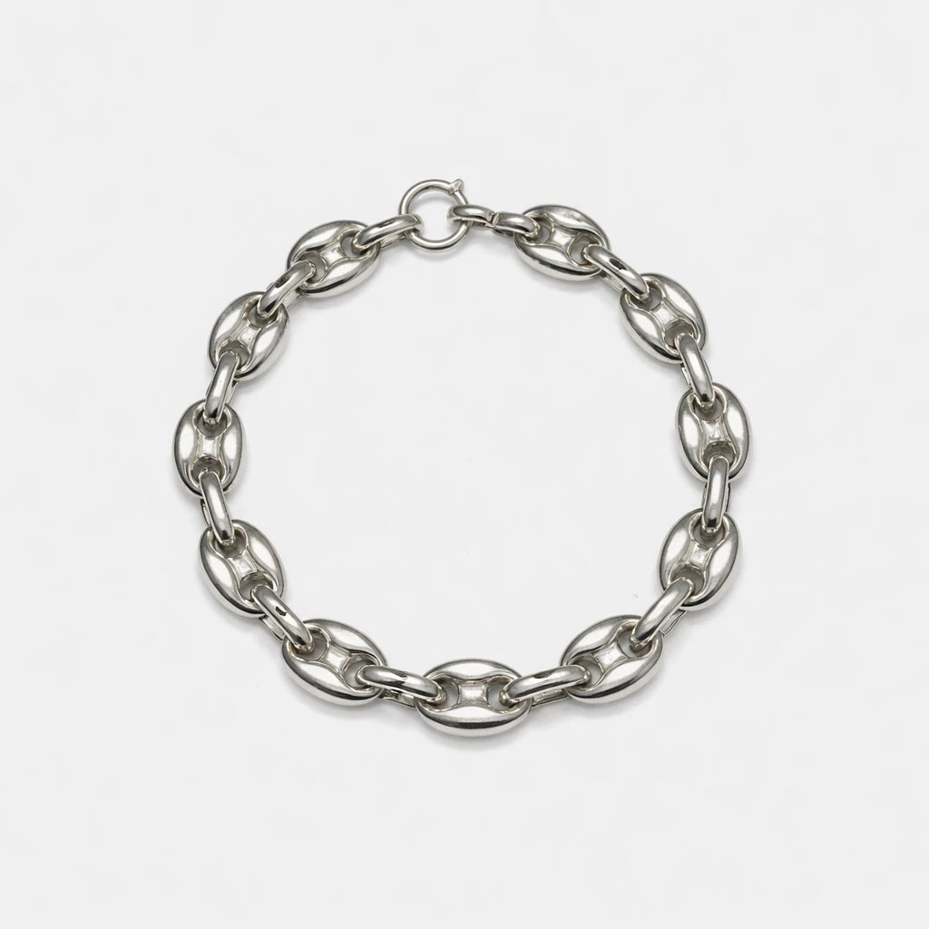 Su diseño de cadena clásica, con eslabones ovalados y volumen equilibrado, transmite fuerza, carácter y estilo atemporal. Es de esas piezas que elevan cualquier look sin esfuerzo: va igual de bien con un vaquero y camiseta blanca que con un conjunto más especial.