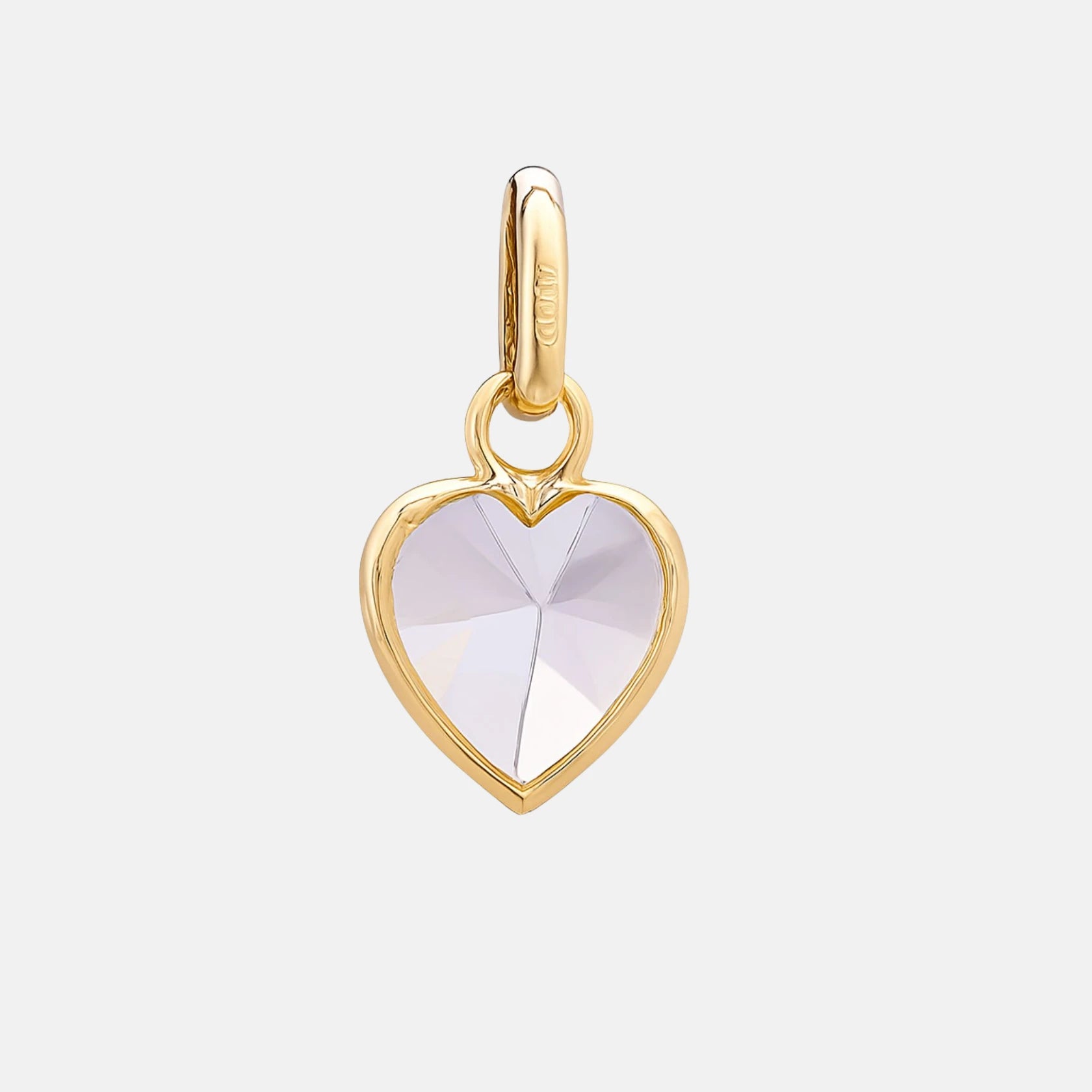 Un diseño delicado y encantador que refleja la luz con un brillo especial. Este colgante en forma de corazón, elaborado en oro de 18 quilates, incorpora una piedra facetada que aporta un efecto luminoso y elegante. Un detalle sofisticado que simboliza amor y pureza, ideal para cualquier ocasión.