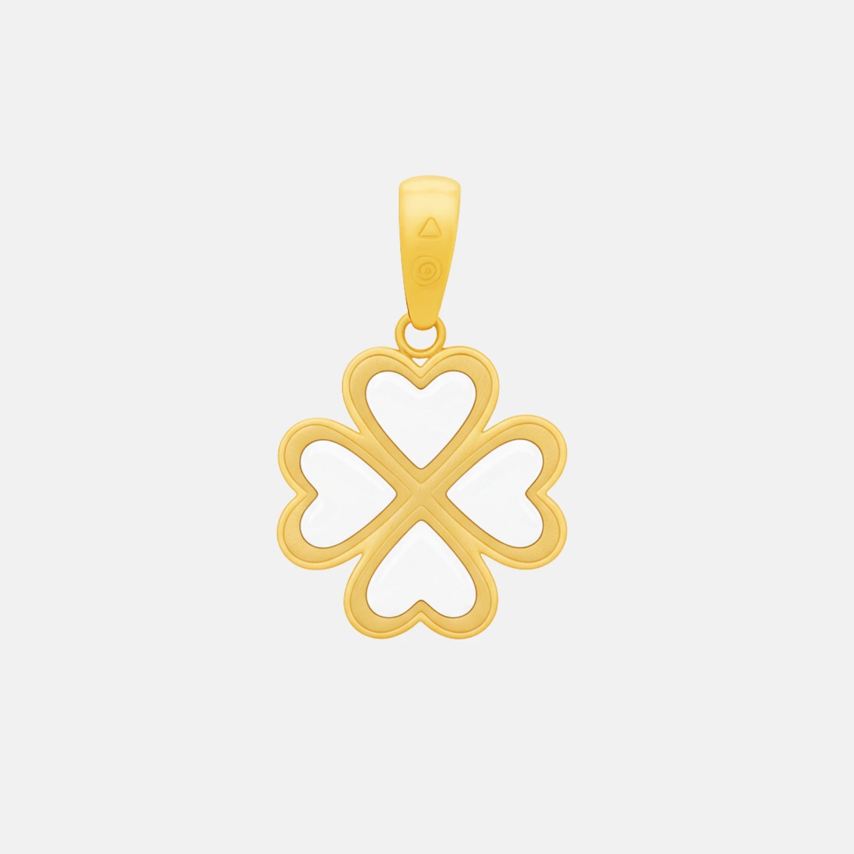 Símbolo de suerte y amor en una sola joya. Este colgante en oro de 18 quilates fusiona el clásico trébol de la fortuna con delicados corazones en un diseño calado, representando felicidad y afecto en cada detalle. Perfecto para quienes buscan un amuleto elegante y significativo.