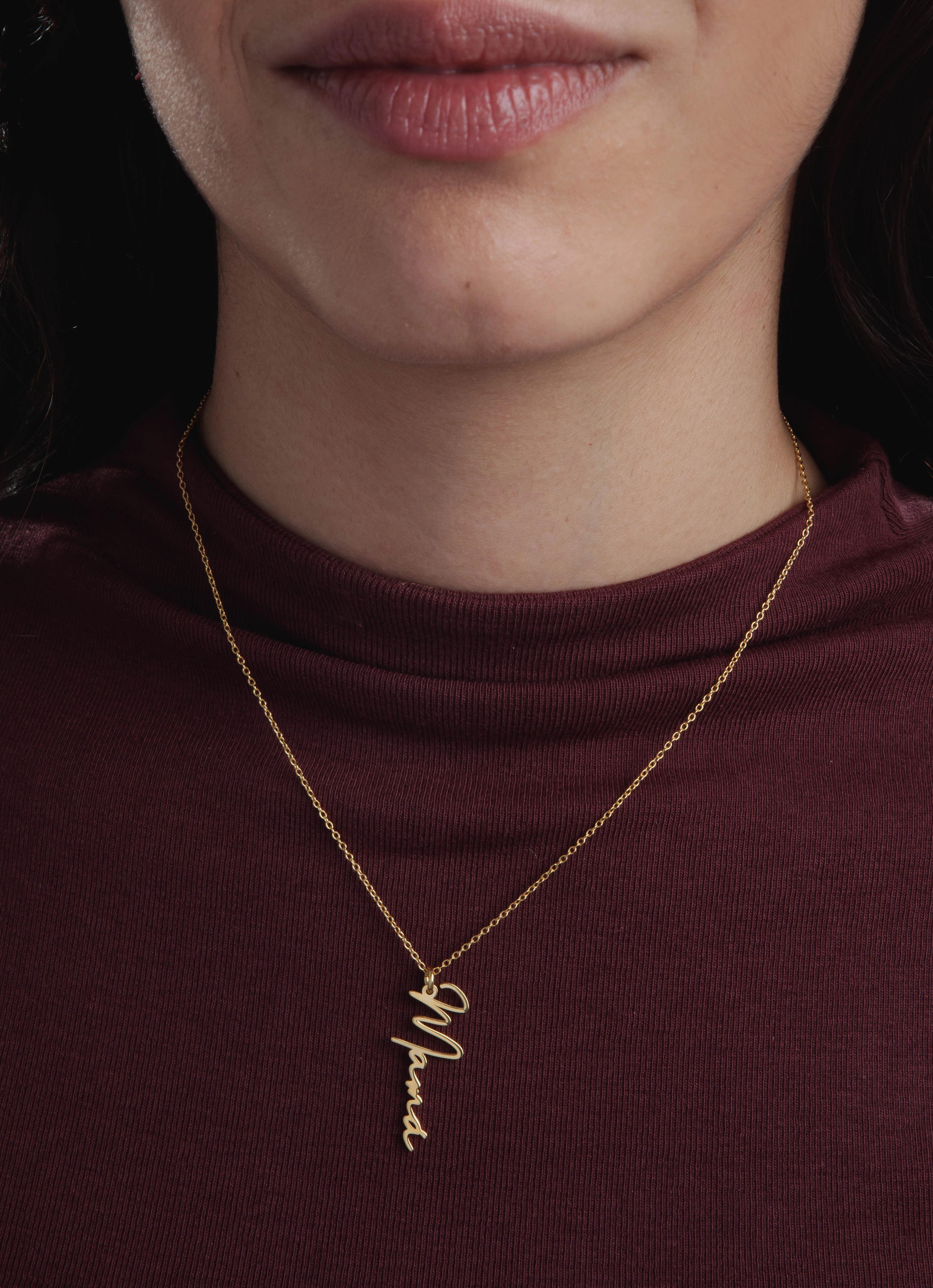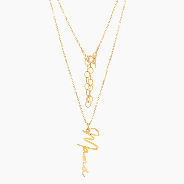 Acabado: cadena baño de oro 18kt con colgante letra cursiva mamá