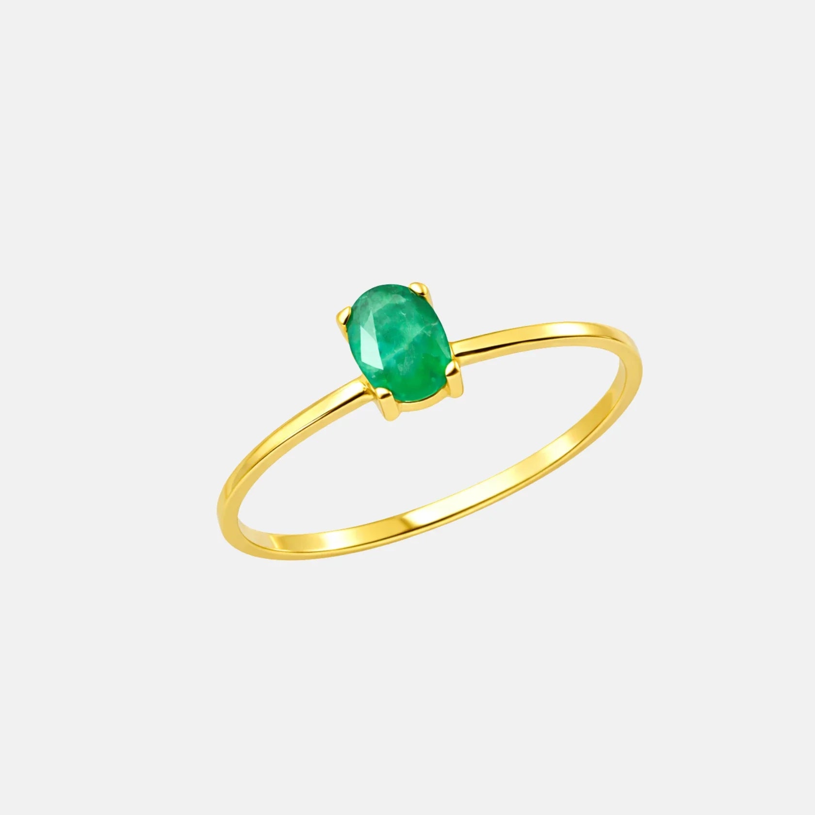 Un anillo delicado que enamora a primera vista. Su diseño fino en oro realza una piedra verde de talla ovalada, engastada con suavidad para dejar que el color y la luz sean los protagonistas. Minimal, elegante y fácil de llevar, es de esos anillos que funcionan solos y también combinados. Aporta un toque de color sutil que ilumina la mano y hace especial cualquier look, tanto de día como de noche. Una joya pensada para llevar siempre, porque cuando algo te hace sentir bien… se nota