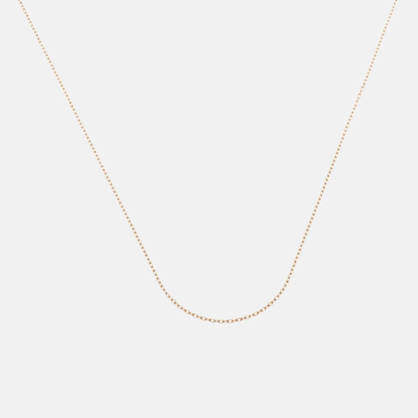Una cadena sencilla y elegante que se adapta a tu estilo con total naturalidad. Su diseño finito y uniforme crea una línea dorada delicada, perfecta para llevar a diario sin que pese ni moleste. Es la típica pieza que queda bien siempre: sola, en capas o acompañando tu colgante favorito. El oro de 9 kts aporta una luz suave y cercana, pensada para enmarcar el cuello con discreción y buen gusto. Además, incluye aro extra para ajustar la medida y llevarla justo donde te gusta.