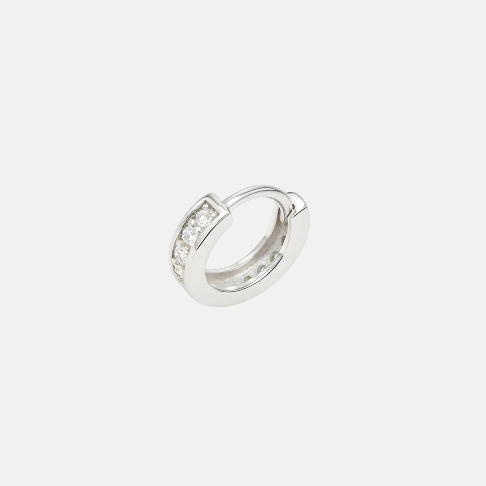 Un piercing versátil, limpio y brillante que se adapta a ti sin complicarte. Su diseño en aro con frontal ancho y una hilera de circonitas aporta un brillo elegante y discreto, perfecto para llevar donde m s te guste. Gracias a su forma y tamaño, es ideal para lóbulo, hélix, tragus, rook, o ese rinconcito donde quieras añadir un destello bonito sin sobrecargar. La plata 925 le da un acabado pulido y duradero que combina con todo.