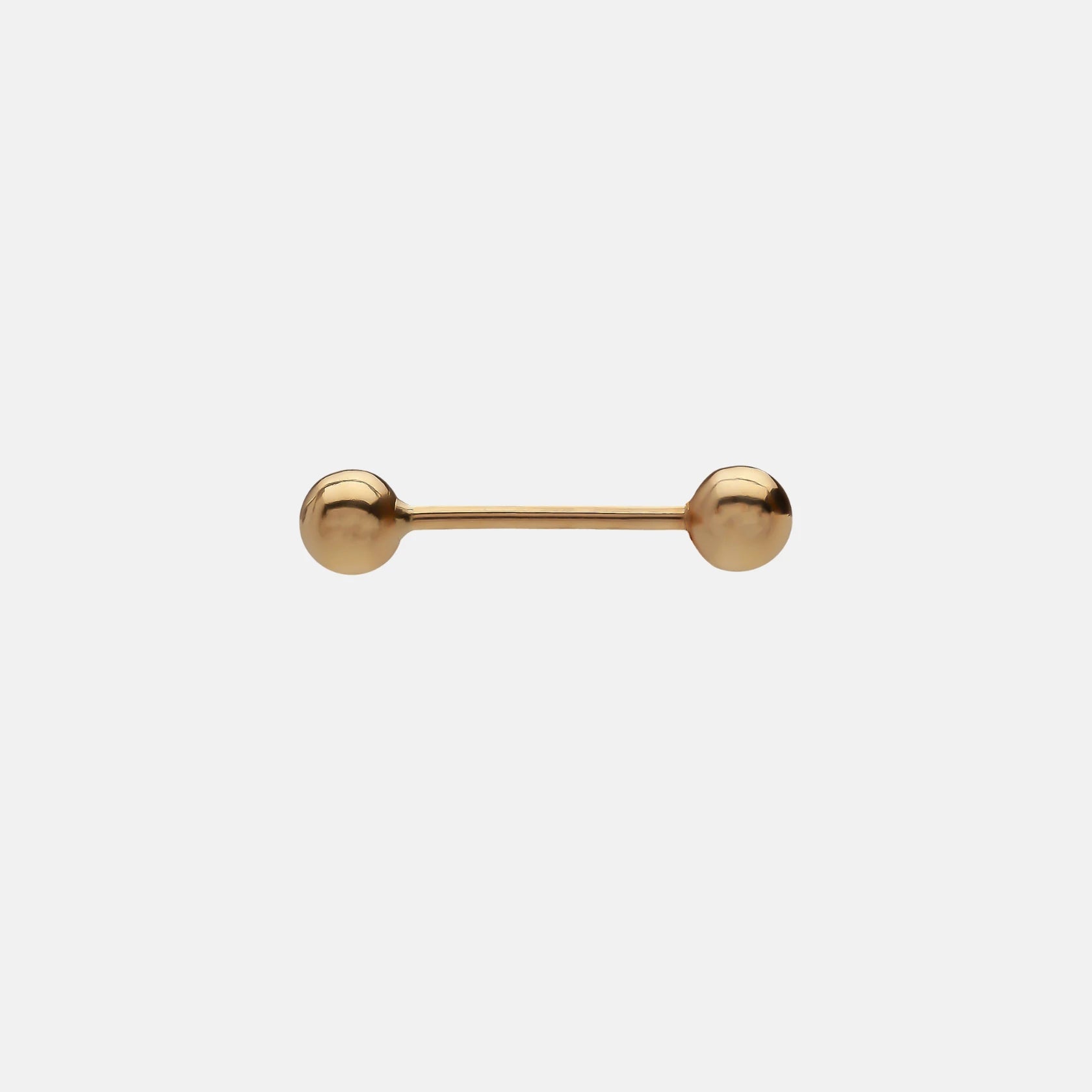 Majestuoso en su simplicidad, el Piercing Barra Lux 18K para lengua está elaborado en oro de 18 quilates, con un diseño clásico de barra recta y esferas pulidas que reflejan la luz con elegancia. Su estructura equilibrada garantiza comodidad y seguridad, convirtiéndolo en una joya atemporal.