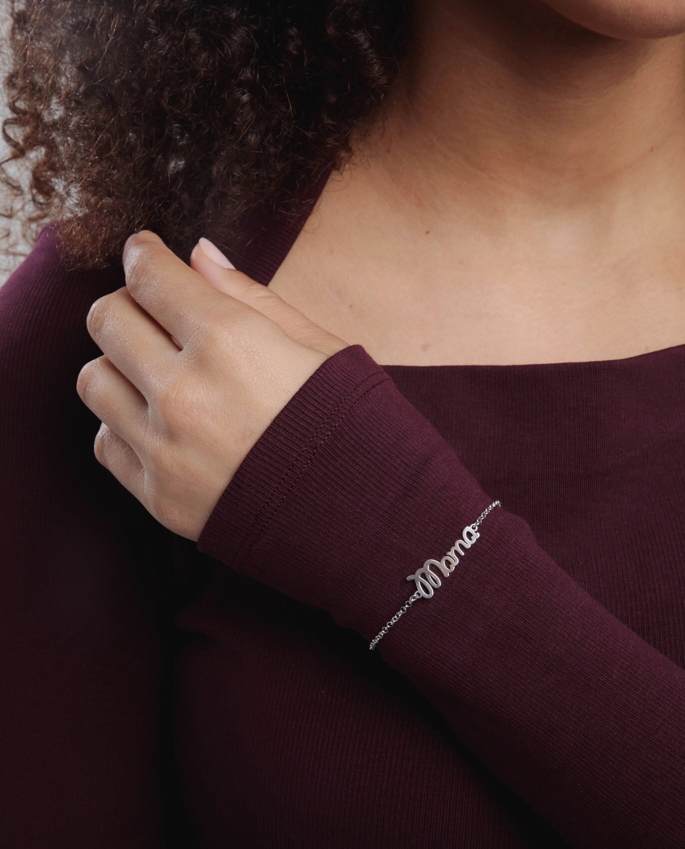 Un homenaje atemporal al amor incondicional. Esta pulsera en plata 925 destaca por su diseño minimalista con la palabra Mamá en una delicada tipografía. Un detalle especial que simboliza conexión, gratitud y cariño. Ajustable para mayor comodidad, perfecta para regalar o llevar siempre contigo.