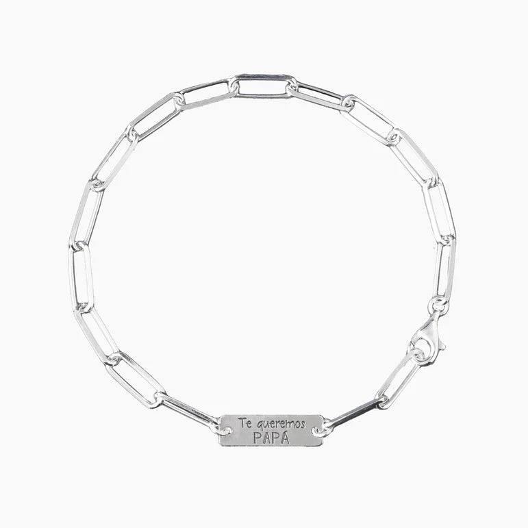 Un detalle especial para demostrar amor y gratitud. Esta pulsera de eslabones en plata 925 incorpora una placa grabada con un mensaje que transmite cariño y conexión. Su diseño elegante y masculino la convierte en una joya ideal para el día a día, combinando resistencia y estilo en una sola pieza.